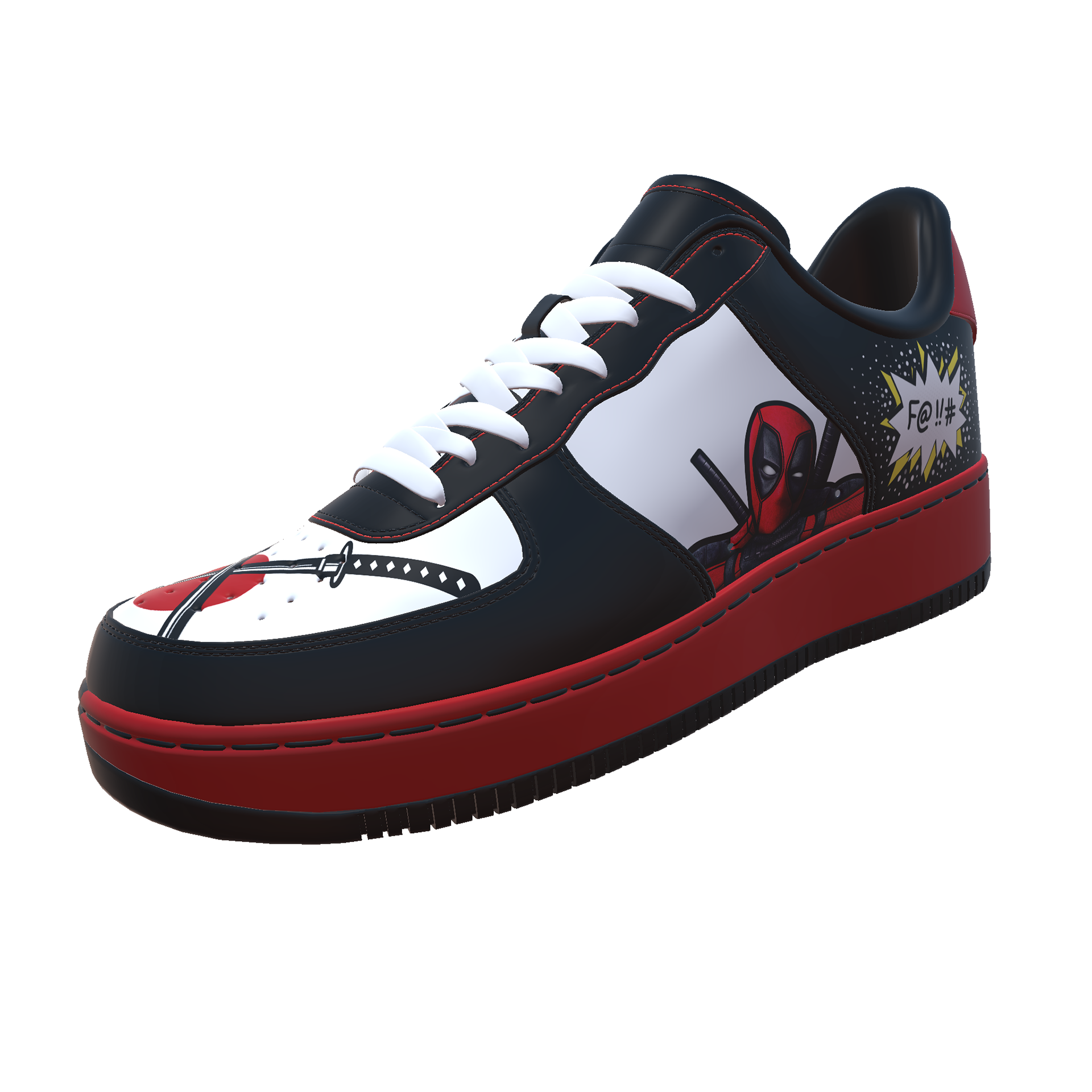 Concept visuals for a speculative collaboration between major film studios and footwear brands. This pair was designed around the Deadpool franchise as a limited-edition theatrical tie-in. All designs are speculative and non-commercial, part of an academic project exploring how fandom and fashion might merge through cinematic partnerships.