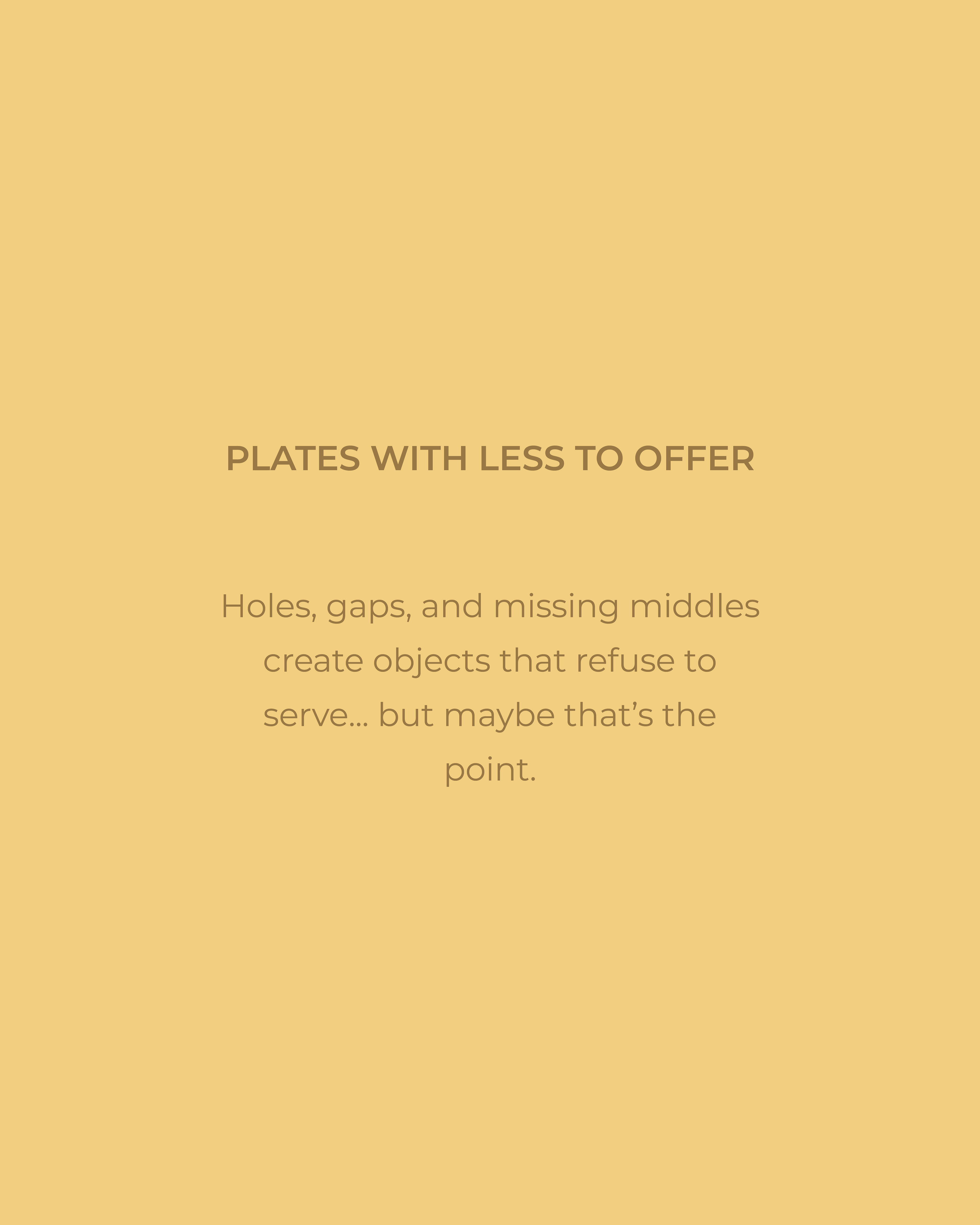 This project questions what makes a plate a plate through a collection of humorous and dysfunctional tableware.